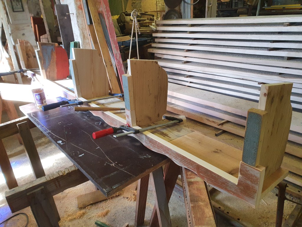 The cabinet itself is a puzzle of many scrap wood pieces doweled and glued together.